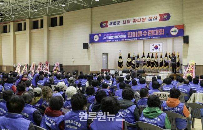 (원투원뉴스) 예산군은 바르게살기운동 예산군협의회가 예산종합운동장 매헌1체육관에서 바르게살기운동 회원과 내빈 등 400여명이 참석한 가운데 2025년 바르게살기운동 한마음수련대회를 개최했다고 18일 밝혔다.