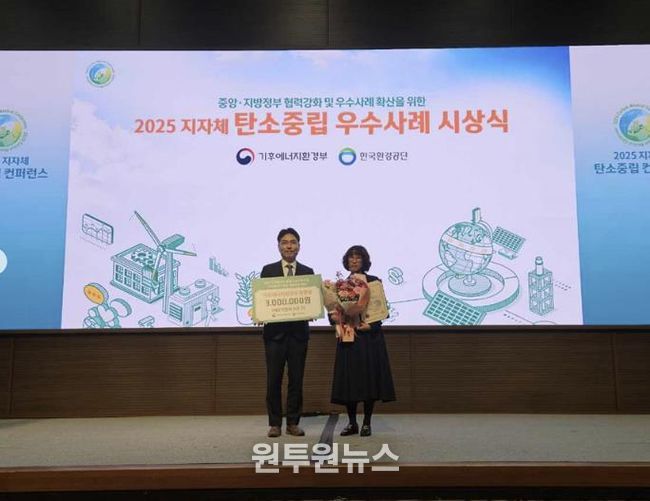 (원투원뉴스) 서울 서초구가 17일 기후에너지환경부가 주최한 ‘2025년 지자체 탄소중립 컨퍼런스’에서 탄소중립 이행 우수 지방자치단체로 선정되며 기후에너지환경부 장관상을 수상했다.