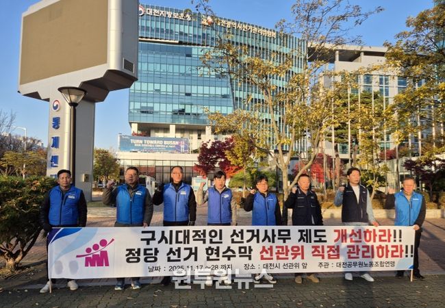 (원투원뉴스) 대전공무원노동조합연맹(위원장 이정만)은 대전시 선관위에서 구시대적인 선거 사무 제도 개선을 요구하는 ‘릴레이 1인 시위’를 진행한다고 18일 밝혔다.