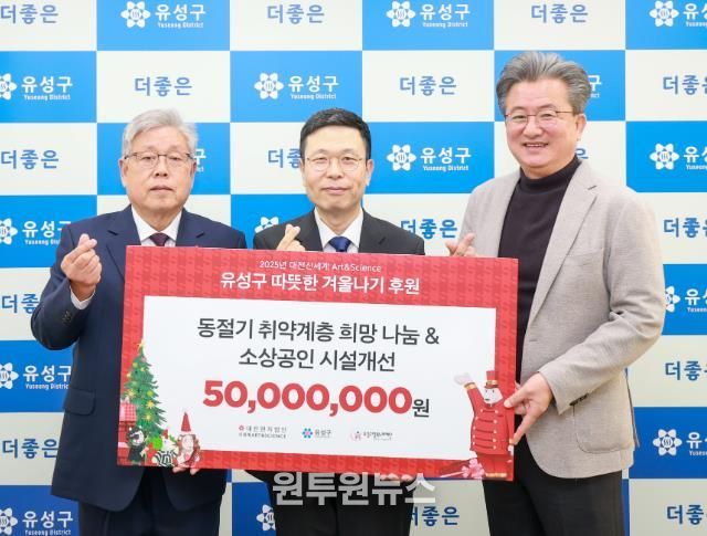 (원투원뉴스) 대전 유성구는 18일 대전신세계 Art&Science에서 유성구행복누리재단에 후원금 5,000만 원을 기탁했다고 밝혔다.