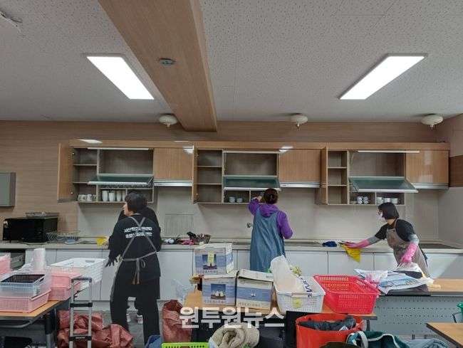 (원투원뉴스) 충청남도서산교육지원청 학교지원센터는 지난 17일, 부춘중학교에서 가사실습교구 폐기 지원, 교구 분류 정리, 교구 라벨링 작업을 진행했다.