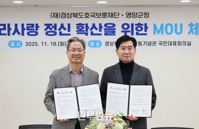 (원투원뉴스) 영양군은 11월 18일경상북도독립운동기념관에서(재)경상북도호국보훈재단과 남자현지사역사공원 활성화 및 보훈문화 확산을 위한 업무협약을 체결했다.