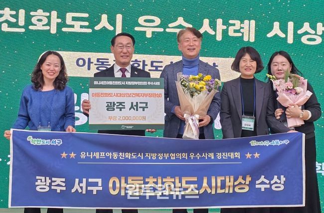 (원투원뉴스) 광주광역시 서구가 ‘함께서구 행복학교’ 정책으로 아동친화도시 대상을 수상했다. 서구는 18일 충남 홍성군에서 유니세프아동친화도시 지방정부협의회가 주최한 2025 아동친화도시 우수사례 시상식에서 전국 최우수 지자체로 선정돼 대상인 보건복지부 장관상을 수상했다.