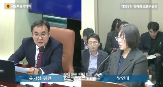 (원투원뉴스) 서울특별시의회 윤기섭 의원(국민의힘, 노원5)은 지난 11월 14일 교통위원회 회의실에서 실시된 종합 행정사무감사에서 △마을버스 운영 △시내버스 재정 △노후 시내버스·전동차 관리 △다원시스 하도급 문제 △도시철도 신호체계 등 서울시 교통 전 분야의 구조적 문제를 강도 높게 지적하고 즉각적인 보완대책 마련을 촉구했다.