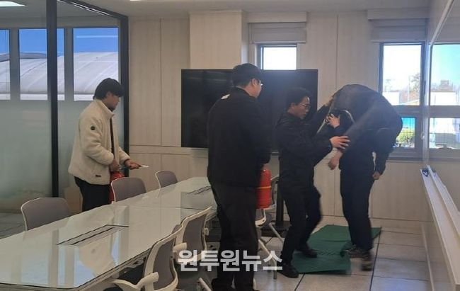 (원투원뉴스) 상주시 상수도사업소에서는 11월 18일 오후 2시, 상수도사업소 관리본관에서 상주소방서와 합동소방훈련을 실시했다고 밝혔다. 훈련은 상수도사업소 및 하수도사업소 직원들이 참여하여 실질적인 대피훈련을 통해 재난 대응능력을 높이고자 마련됐다.