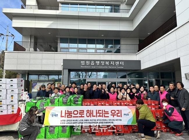 (원투원뉴스) 파주시 법원읍 금곡2리 마을회는 지역사회 나눔 확산을 위해 지난 17일, 법원읍 행정복지센터에서 관내 기업인 뮤직오션컴퍼니, 미성기업, 유진기업과 함께 참여한 겨울맞이 이웃 돕기 나눔 행사를 진행했다.