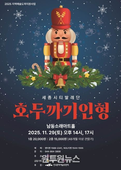 한편, 세종시티발레단의 ‘호두까기 인형’은 한국문화예술위원회가 지역 기초예술의 성장과 활성화를 위해 추진한 ‘2025 지역예술도약지원사업’에 선정된 작품으로, 남동문화재단과 세종시티발레단의 공동 기획프로그램으로 선보인다.