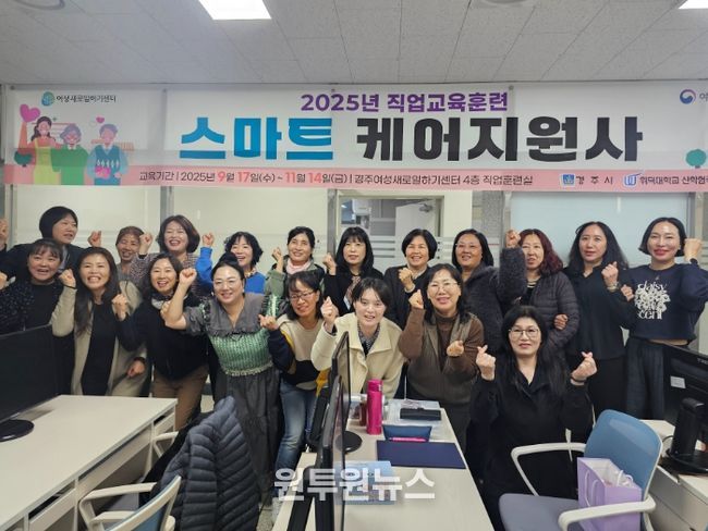 (원투원뉴스) 경주여성새로일하기센터는 지난 14일 ‘2025년 직업교육훈련 스마트 케어지원사’ 과정 수료식을 열고 총 20명의 교육생에게 수료증을 전달했다.