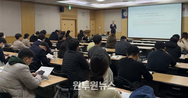 (원투원뉴스) 대전시는 19일 대전시청 세미나실에서 중대재해 예방 담당 공무원 등 80여 명을 대상으로‘중대시민재해 예방․전략 특강’을 개최했다.