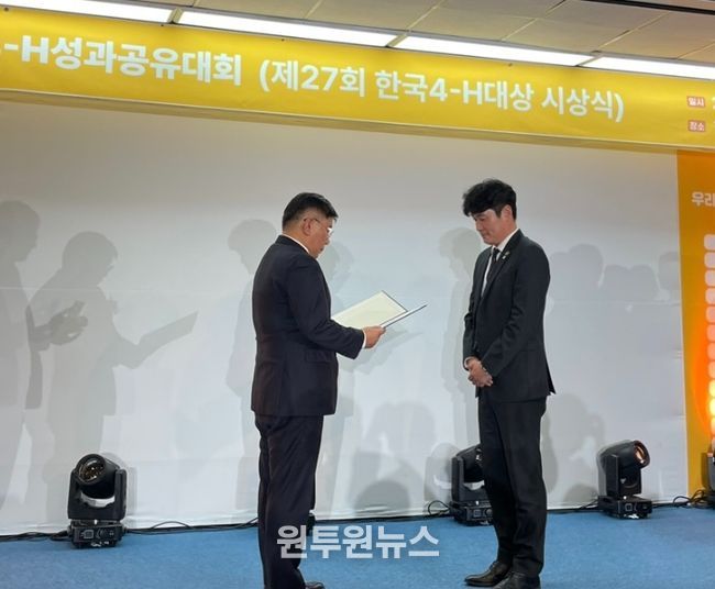 (원투원뉴스) 19일 익산시에 따르면 이지훈 전 익산시4-H연합회장은 이날 열린 '제27회 한국4-H대상 시상식'에서 청년4-H회원 부문 최우수상(농촌진흥청장상)을 수상했다.