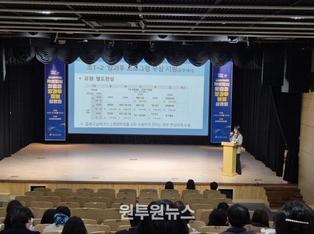 이번 설명회는 업무 총괄 담당자들에게 ‘2026학년도 학생중심 맞춤형 방과후‧돌봄 운영’의 주요 추진 계획과 내용을 상세히 안내하기 위해 마련됐다.
