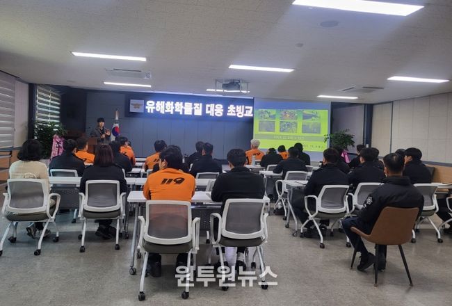 (원투원뉴스) 영동소방서(서장 이명제)는 본서 3층 대회의실에서 화학물질 누출사고 대응 역량 강화를 위한 특별교육을 실시했다고 19일 밝혔다.