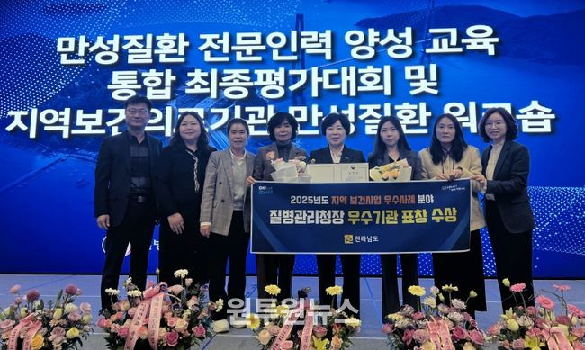 (원투원뉴스) 전라남도는 19일까지 이틀간 여수 디오션리조트에서 개최된 2025 만성질환 전문인력 양성교육 통합 최종 평가대회에서 지역 보건사업 우수사례 분야 우수기관으로 선정됐다고 밝혔다.