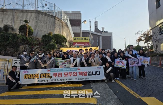(원투원뉴스) 연제구는 11월 18일 과정초등학교 일원에서 동래교육지원청, 연제경찰서 등 유관기관과 함께 ‘어린이 약취·유인 예방을 위한 합동 캠페인’을 실시했다.