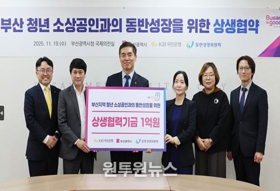 (원투원뉴스) 부산시는 부산 지역 청년 소상공인과의 동반성장을 위해 케이비(KB)국민은행-동반성장위원회와 어제(19일) 오후 2시 20분 시청 국제의전실에서 상생협약을 체결했다고 밝혔다.