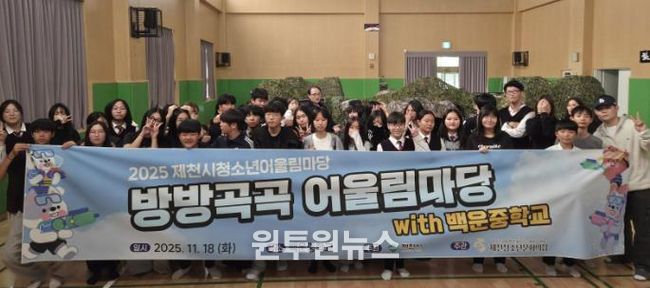 (원투원뉴스) 제천청소년문화의집은 지난 18일 백운중학교에서 2025 제천청소년어울림마당의 마지막 행사인 ‘방방곡곡 어울림마당 with 백운중학교’를 성황리에 개최했다. 이번 행사에는 백운중학교 학생 44명이 참여해 활기찬 하루를 보냈다.