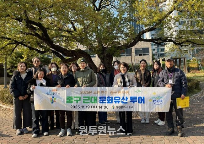 (원투원뉴스) 대전동부교육지원청은 11월 19일 관내 초·중·고등학교 교원 20명을 대상으로 교원연수 '중구 한바퀴' 프로그램을 운영했다고 밝혔다.