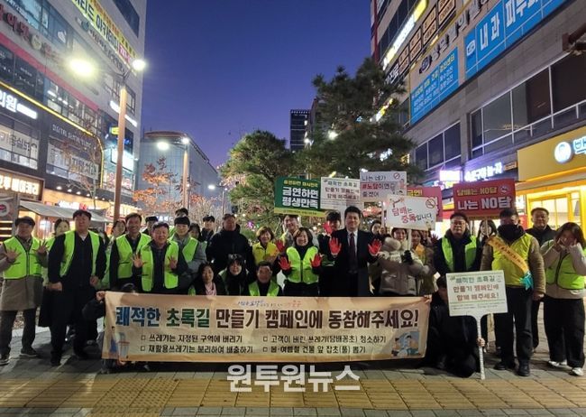 참석자들은 갑작스러운 추위에도 불구하고 초록길 일대의 무단투기 된 쓰레기와 담배꽁초를 집중적으로 수거하며 깨끗한 거리 조성에 힘썼다.