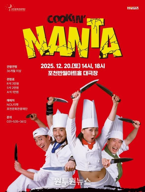 (원투원뉴스) 포천문화관광재단은 오는 12월 20일 포천반월아트홀 대극장에서 대한민국 대표 비언어 퍼포먼스 ‘난타(NANTA)’ 공연을 개최한다.