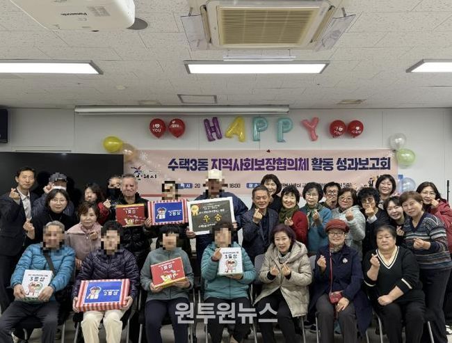 (원투원뉴스) 구리시 수택3동지역사회보장협의체는 지난 19일 ‘2025년 활동 성과보고회’를 개최하고, 1년간의 활동 성과를 공유하며 향후 지역복지 발전 방향을 모색하는 자리를 마련했다.