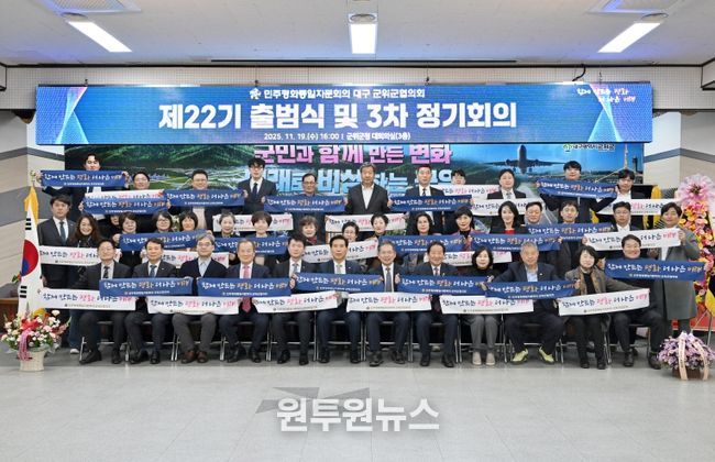 (원투원뉴스) 민주평화통일자문회의 군위군협의회(협의회장 전기식)는 11월 19일 오후 16시 군위군청 대회의실에서 군위군수, 자문위원 등 50명이 참석한 가운데 ‘제22기 출범식 및 2025년 3차 정기회의’을 개최했다.