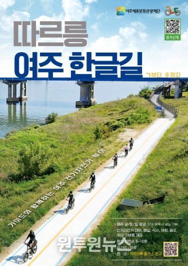 (원투원뉴스) 여주세종문화관광재단은 9월부터 11월까지 약 3개월간 무료로 운영된 여주시 자전거 시티투어(‘따르릉 여주 한글길: ㄱ부터 ㅎ까지’)가 약200여명의 관광객이 참여한 가운데 성공적으로 마무리됐다고 밝혔다.