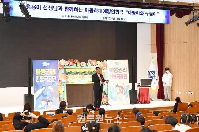 (원투원뉴스) 부산 동래구는 동래구혁신어울림센터가 지난 14일 ‘아동학대 예방의 날’을 기념해 동래구청 동래홀에서 아동권리를 주제로 한 인형극 공연을 진행했다고 밝혔다.