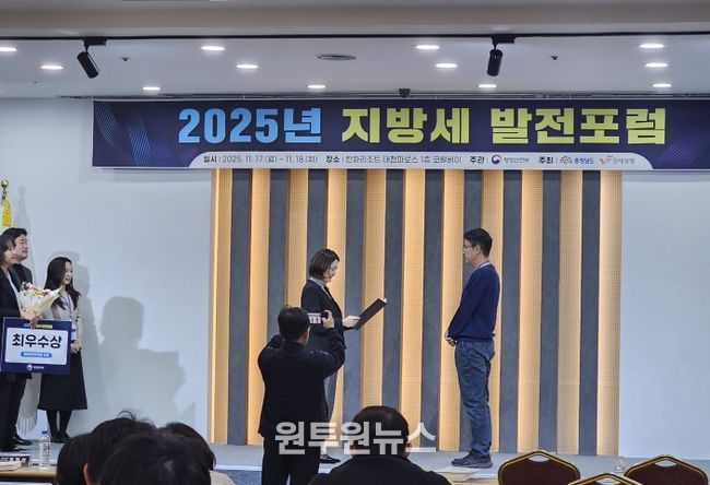 (원투원뉴스) 함안군은 지난 17일부터 18일까지 충남 보령시에서 열린 행정안전부 주관 ‘2025년도 지방세 발전포럼’에서 최우수상을 수상했다고 밝혔다.