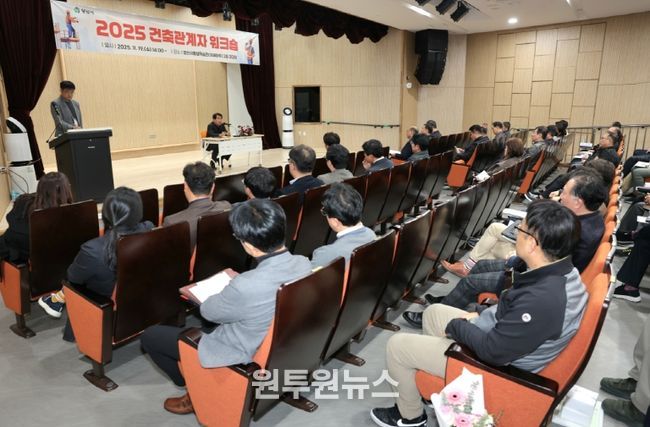 (원투원뉴스) 양산시는 지난 19일 양산시 평생학습관 지혜마루에서 나동연 양산시장을 비롯한 관계 공무원, 건축사, 토목설계사 등 120여명이 참석한 가운데 '2025 건축관계자 워크숍'을 개최했다.