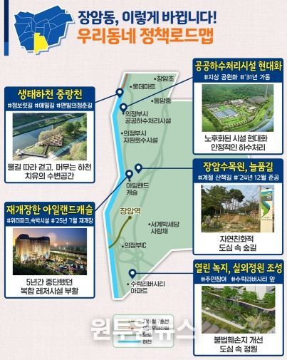 (원투원뉴스) 의정부시는 시민 생활과 밀접한 행정‧인프라‧복지‧문화 등에 대한 정보를 지역 단위로 정리한 ‘우리동네 정책로드맵’ 장암동편을 21일 발표했다.
