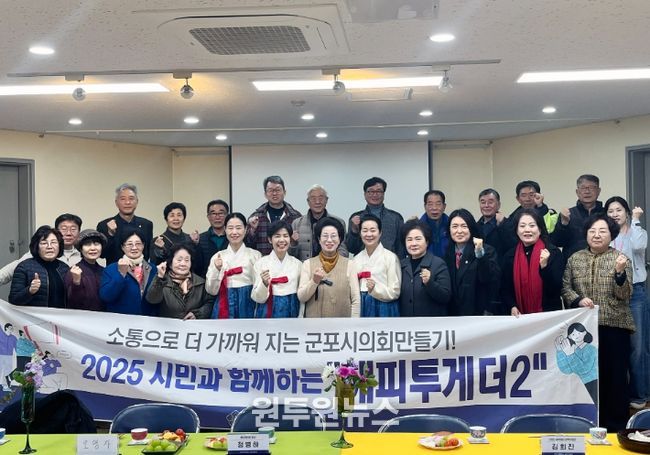 (원투원뉴스) 군포시의회 의원연구단체 ‘시민과 함께하는 해피투게더 2’(대표의원 이훈미, 소속의원 이길호․박상현, 이하 해피투게더 2)가 지역 자원봉사자들과 만나 활동 등의 어려움에 대해 듣고, 봉사자 대우 강화를 위한 제도 제․개정 방향을 의논했다.