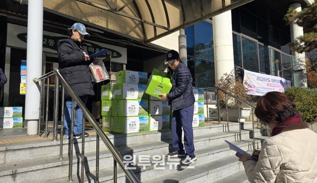 (원투원뉴스) 충북 괴산군 칠성면, 연풍면, 소수면, 청안면 주민자치위원회는 11월 중순부터 서울·경기 지역 자매결연지에서 절임배추 직거래 행사를 잇달아 개최하며 총 1,594박스를 판매, 약 7,000만 원의 농가소득을 올렸다.
