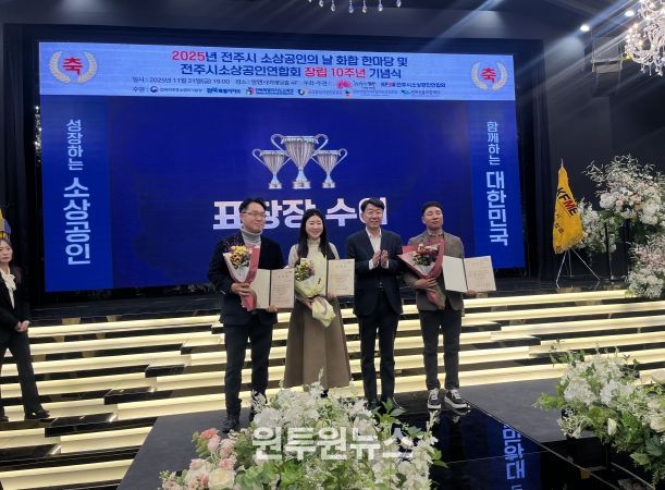 이어진 표창 및 감사패 수여식에서는 지역경제 발전 유공자들에게 표창장이 수여됐으며, 소상공인 정책 지원에 힘써 온 신유정·한승우 전주시의회 의원이 감사패를 받았다.