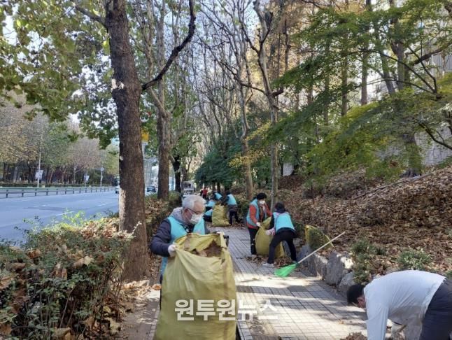 (원투원뉴스) 2025년 11월 21일, 광정동행정복지센터는 통장협의회와 함께 가을철 가로수길 낙엽 청소를 실시했다.