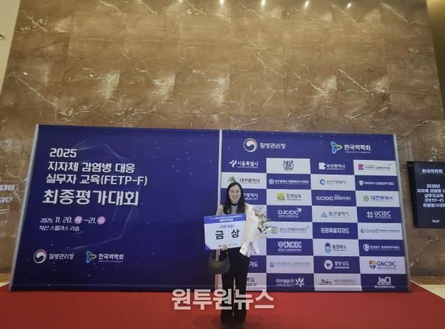 20~21일 스플라스 리솜(예산군)에서 열린 2025년 FETP-F(감염병 대응 실무자교육) 담당자 과정 최종 평가대회에서는 요양원 CRE 집단 발생의 위험 요인을 분석하고, 이에 대한 보건소 예방·관리 중재 활동을 설계·시행한 사례를 공유해 금상을 받았다.