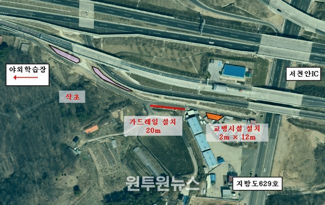 민원인은 고속국도 제32호선 '아산~천안 건설공사'로 설치된 부체도로가 ㄱ유치원 야외학습장 진입도로로 사용되고 있으나, 도로 폭이 약 3m에 불과하여 25인승 유치원 버스가 다른 자동차와 서로 교차하며 지나가기 어렵고, 특히 경사 구간에서는 마주 오는 차량이 있게 되면 자칫 유치원 버스가 진입도로 옆 배수로로 추락할 위험 또한 높다고 호소했다.