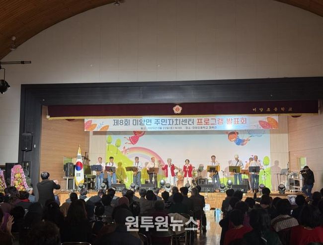 (원투원뉴스) 지난 22일 미양초등학교 체육관에서 주민자치 프로그램 수강생, 기관·사회단체장, 주민 등 200여명이 참석한 가운데, 제8회 미양면 주민자치센터 프로그램 발표회가 개최됐다.
