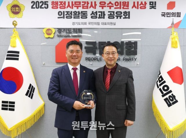 (원투원뉴스) 경기도의회 경제노동위원회 정하용 의원(국민의힘, 용인5)은 24일, 국민의힘 회의실에서 열린 ‘2025년 행정사무감사 우수의원 시상식’에서 행정사무감사 우수위원으로 선정됐다. 이번 선정은 행정사무감사 기간 동안 도민생활과 직결된 핵심 현안들을 면밀히 점검하고, 구조적 문제를 드러내는 데 기여한 점이 높게 평가된 결과이다.