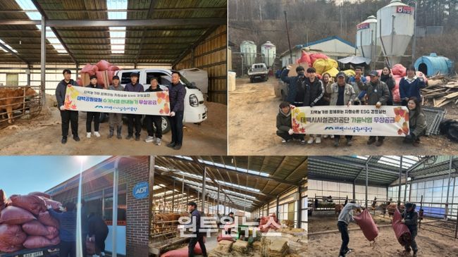 (원투원뉴스) 태백시시설관리공단은 폐낙엽 자원순환 사업의 일환으로 지난 11월 19일과 20일 관내 축산농가 2곳에 폐낙엽 200포를 1차로 기부했다고 밝혔다.