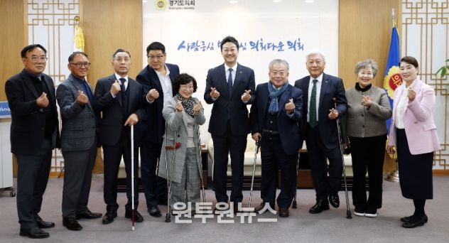 김 의장은 이날 의장 집무실에서 경기도장애인복지단체연합회 이영재 회장, 경기도지체장애인협회 김원종 회장, 경기도시각장애인연합회 정태곤 회장 등을 만나 내년도 장애인복지 예산의 삭감으로 인한 어려움을 청취했다.