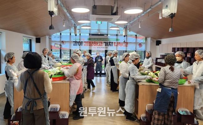 (원투원뉴스) 경기도 먹거리광장은 지난 25~26일 이틀간 사계주방 연말 특별프로그램 ‘같이 김장하고 가치 나누고’를 통해 도민들과 함께 김장을 하고 완성한 김치를 인근 사회복지기관에 전달하며 나눔을 실천했다.