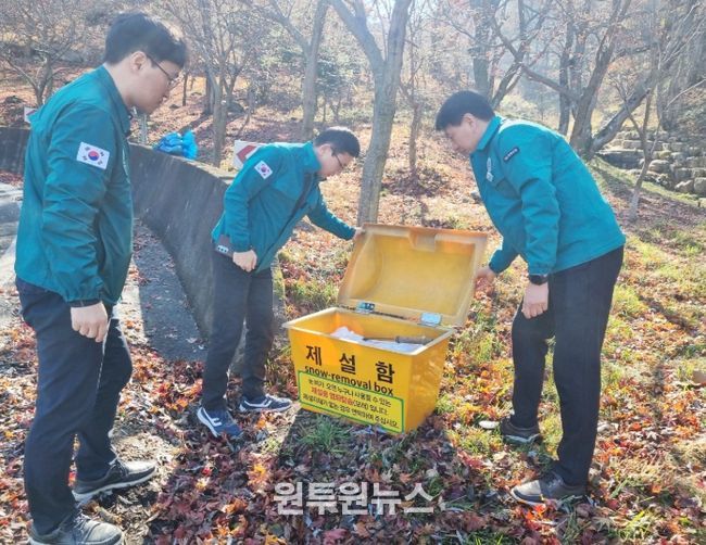 특히, 상습 결빙 지역인 오도재와 원통재의 염수분사장치 및 통제 시설이 정상 작동하는지 점검했으며, 제설 차량과 살포기 등 장비의 가동 상태도 확인했다. 또한, 염화칼슘과 모래 등 제설 자재의 충분한 비축 여부도 점검했다.