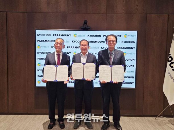(원투원뉴스) 제주관광공사(사장 고승철)는 지난 25일 경기도 성남시에 위치한 교촌에프앤비 본사에서 차별화된 제주 관광·문화 기반의 신규 콘텐츠 개발과 다양한 협력사업 추진을 위해 교촌에프앤비(대표이사 송종화), 파라마운트(대표 안병기)와 3자 업무협약을 체결했다고 26일 밝혔다.