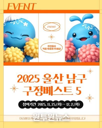 (원투원뉴스) 울산 남구는 2025년에 추진한 정책 중에서 구정 발전과 구민 삶의 질 향상에 기여하고 가시적인 성과를 거둔 정책을 구민이 직접 참여하는 설문조사를 통해 ‘구정베스트’로 선발한다고 밝혔다.