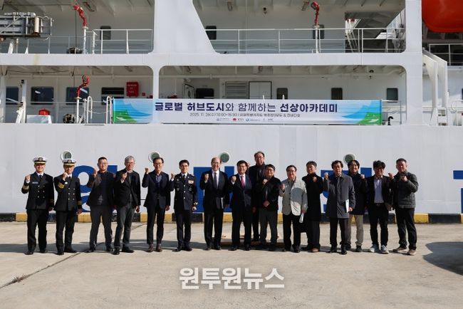 (원투원뉴스) 동해시는 11월 26일, 묵호항에 정박한 국립한국해양대학교 실습선 한바다호에서 ‘글로벌 허브도시와 함께하는 선상 아카데미’를개최했다.