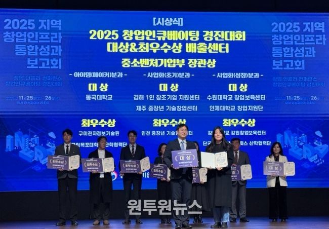 (원투원뉴스) 서귀포시는 제주 중장년 기술창업센터가 25일 인천에서 열린 ‘2025 지역 창업인프라 통합 성과보고회’에서 창업 인프라 활성화 유공으로 중소벤처기업부 장관상을, 우수 운영센터로 선정되어 창업진흥원장상을 함께 수상했다고 밝혔다.