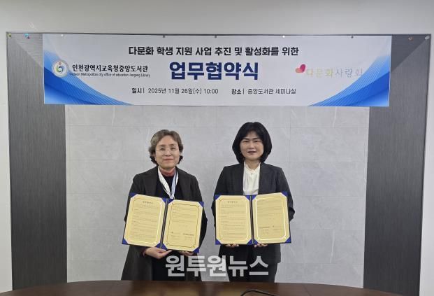 (원투원뉴스) 인천광역시교육청중앙도서관은 26일 다문화사랑회 새꿈학교와 다문화 서비스의 효율적 추진과 활성화를 위한 업무협약을 체결했다.
