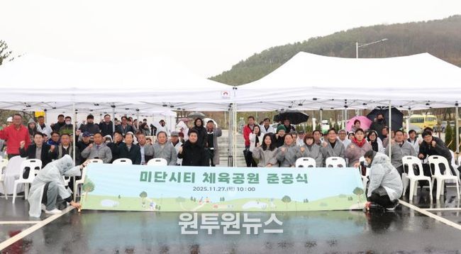 인천시 중구는 27일 오전 김정헌 중구청장, 구의원, 지역 자생단체장, 중구 파크골프협회·족구협회 등 지역 체육단체장, 지역 주민 등이 참석한 가운데 ‘미단시티 체육공원 준공식’을 개최했다.