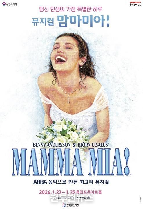 (원투원뉴스) 용인문화재단은 오는 2026년 1월 23일부터 25일까지 뮤지컬 ‘맘마미아!’를 용인포은아트홀에서 개최한다고 밝혔다. 관람 연령은 초등학생 이상으로, 겨울방학 기간 가족·친구·연인 등 남녀노소 누구나 함께 즐길 수 있는 대표 뮤지컬을 3일간 총 4회에 걸쳐 선보인다.