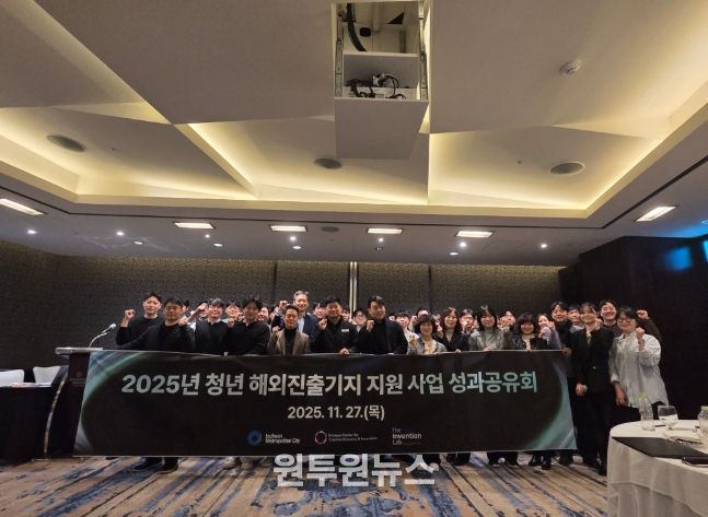 (원투원뉴스) 인천광역시와 인천창조경제혁신센터는 11월 27일 인천 송도 쉐라톤 호텔에서 ‘2025년 청년 해외진출기지 지원 사업’ 성과공유회를 개최했다고 밝혔다.